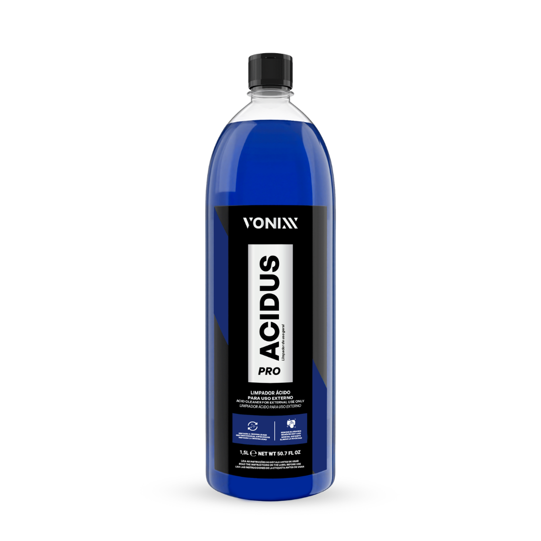 ACIDUS FAST é um limpador ácido automotivo de alta performance, desenvolvido para remover sujeiras minerais em rodas, chassis, emblemas, plásticos externos e metais. Sua fórmula balanceada permite restaurar a originalidade de diversas áreas do veículo, eliminando marcas d’água leves em vidros e pinturas, além de poder ser utilizado na limpeza de motores e detalhes de difícil acesso, grades e contornos.