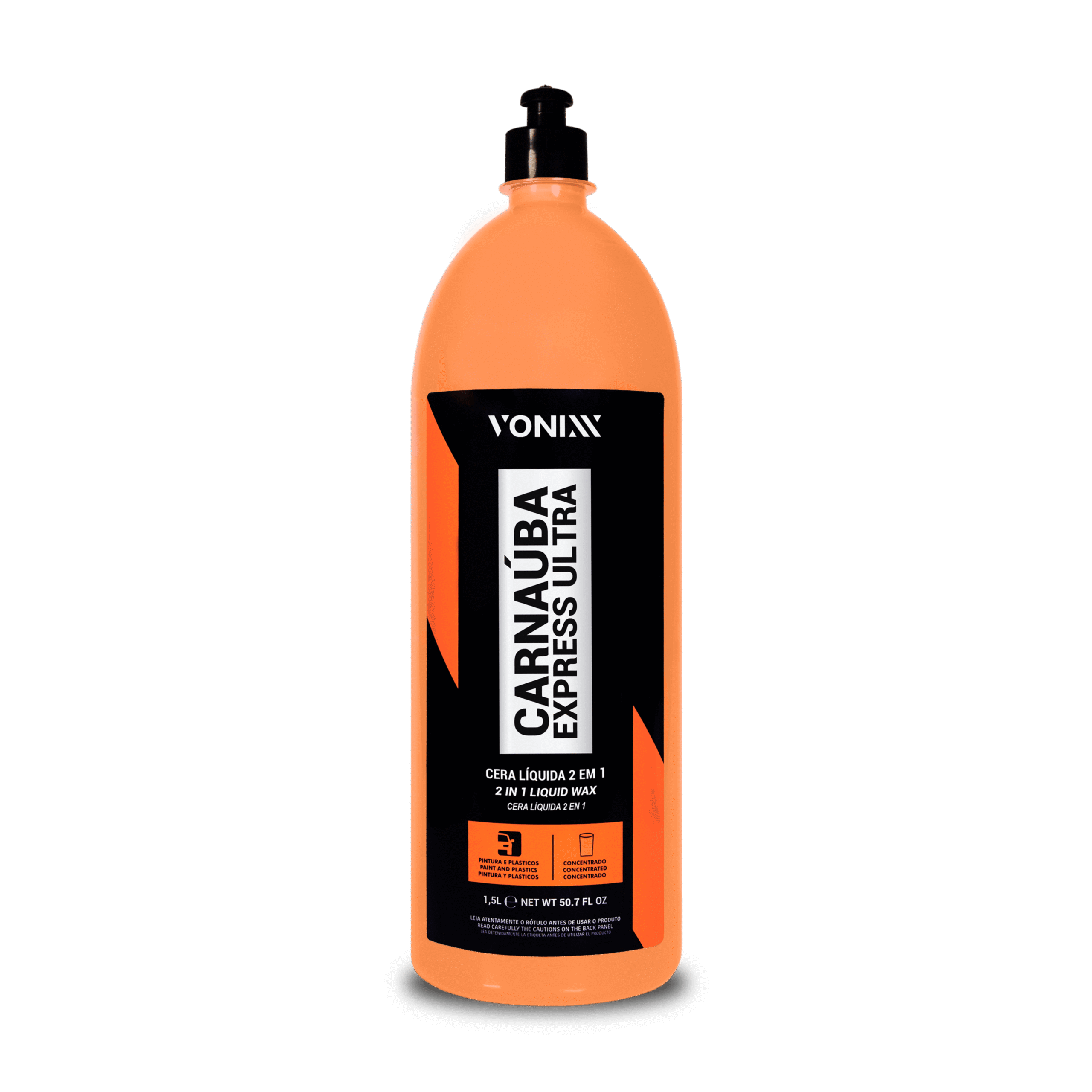 Carnaúba Express Ultra é um produto versátil, ideal para enceramento da pintura e cuidados básicos com os plásticos. Sua fórmula contém carnúba tipo 1 e promove excelente acabamento, toque aveludado e brilho à pintura. Nos plásticos internos e externos age na renovação do material. O produto pode ser utilizado em toda a suerfície veicular, incluindo vidros, plásticos, rodas, etc. Nos plásticos, proporciona acabamento fosco ou acetinado, a depender da diluição. Rendimento: até 75L de cera pronta para uso.