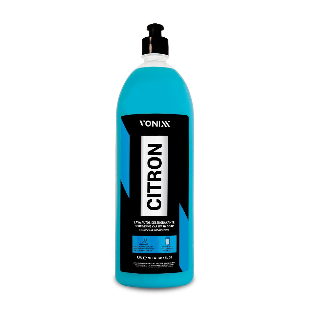 Citron é um lava autos desengraxante. Sua fórmula contém tensoativos especiais e solventes naturais extraídos de cascas de laranja. Citron é ideal para lavagem pesada de veículos, atuando na remoção de graxa, matéria orgânica e ceras, auxiliando na limpeza profunda da pintura do automóvel.