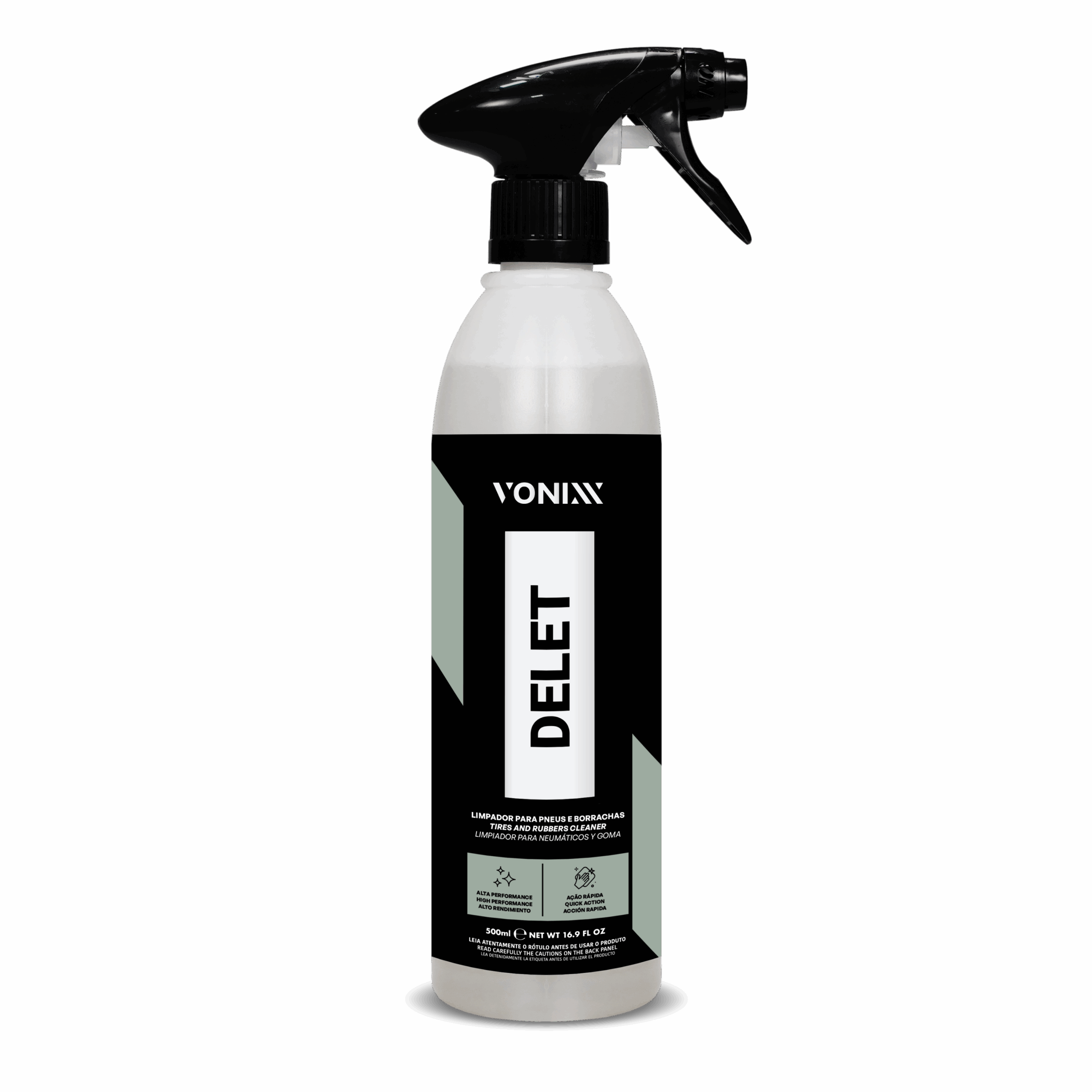 Delet é um limpador de alta performance, formulado exclusivamente para remover sujidade severa em pneus e borrachas, garantindo total limpeza, desenvolvendo originalidade e sem deixar aspecto acinzentado. Essa limpeza ajudará a melhorar a performance dos produtos para condicionar os pneus.