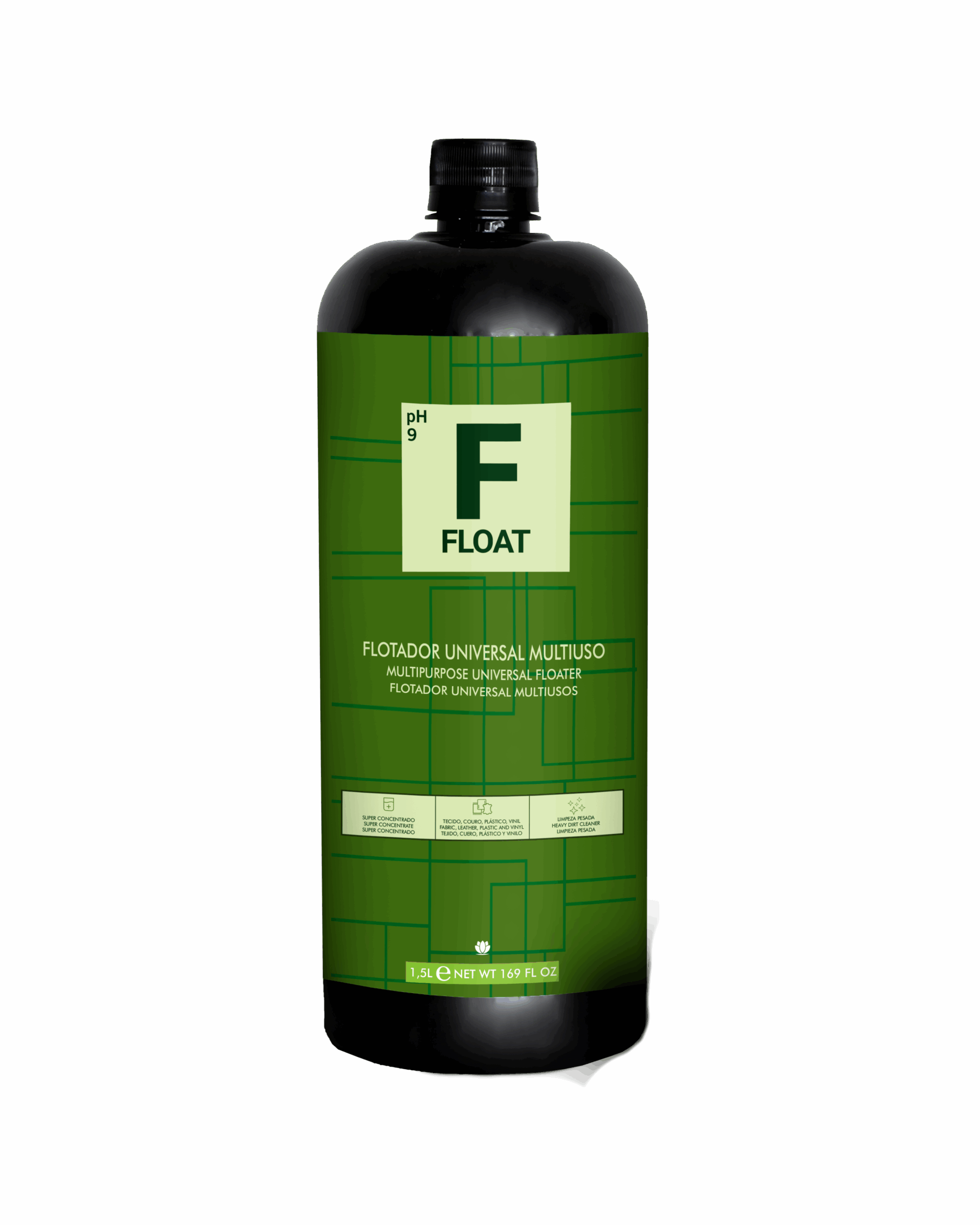 Float é super concentrado. Sua diluição varia de acordo com os níveis de sujeiras e manchas. Sua fórmula é desenvolvida para promover baixíssima espumação, ideal para limpeza a seco, agindo pesado em em manchas inorgânicas de alta intensidade, podendo ser usado em tornadores e extratoras.