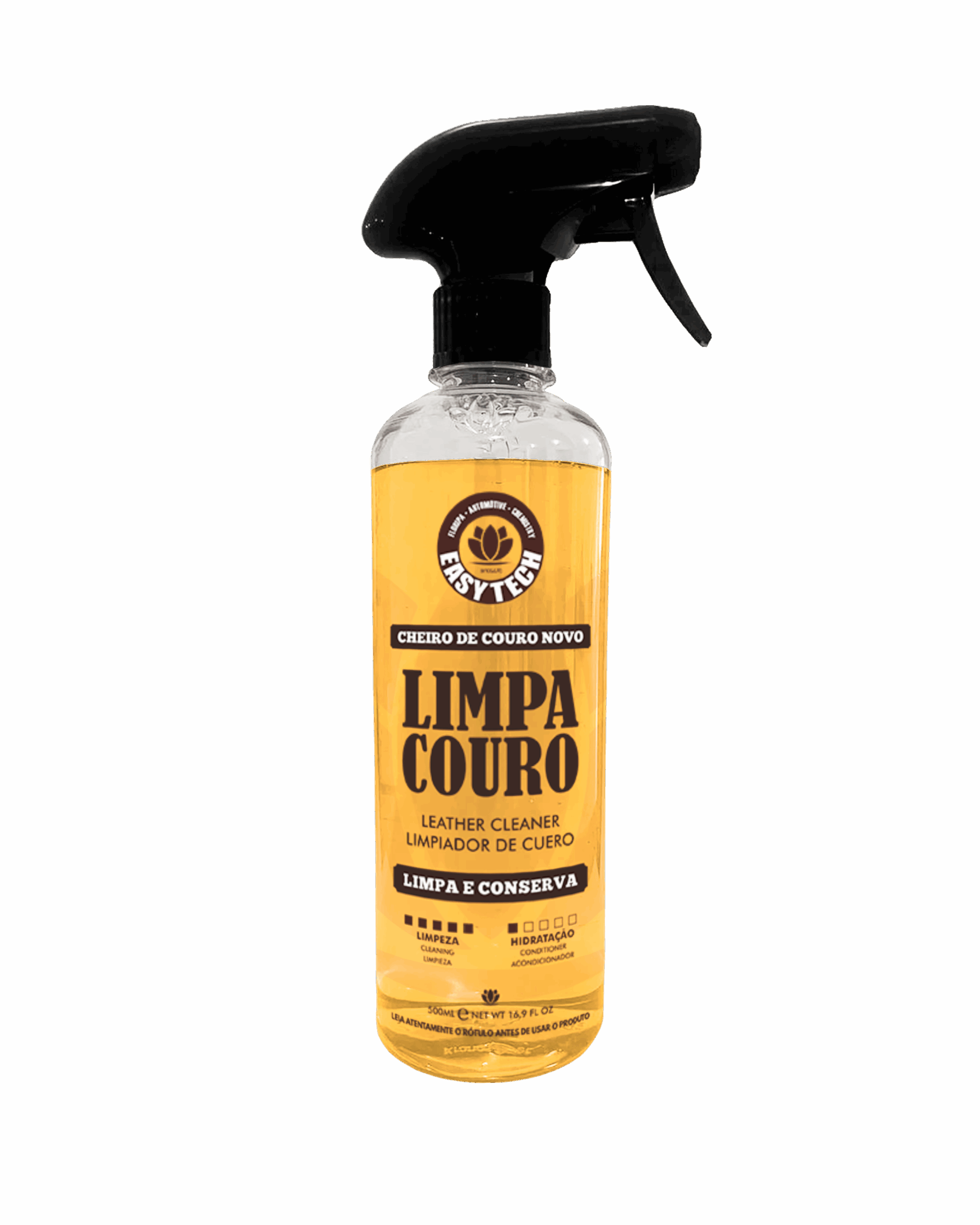 Limpa Couro Easytech é um produto desenvolvido para limpeza de alta intensidade em couro sintético e natural. A superfície do couro tem uma característica única, altamente rugosa e pigmentada, demandando a limpeza na medida certa sem prejudicar o aspecto do couro. Em virtude disso, Limpa Couro Easytech possui uma mistura de 5 tensoativos especiais para limpar vários tipos de sujeira em uma aplicação única, variando de pigmentos a óleos e gorduras. Limpa Couro também possui o cheiro característico e apaixonante de couro, exclusividade da Easytech.