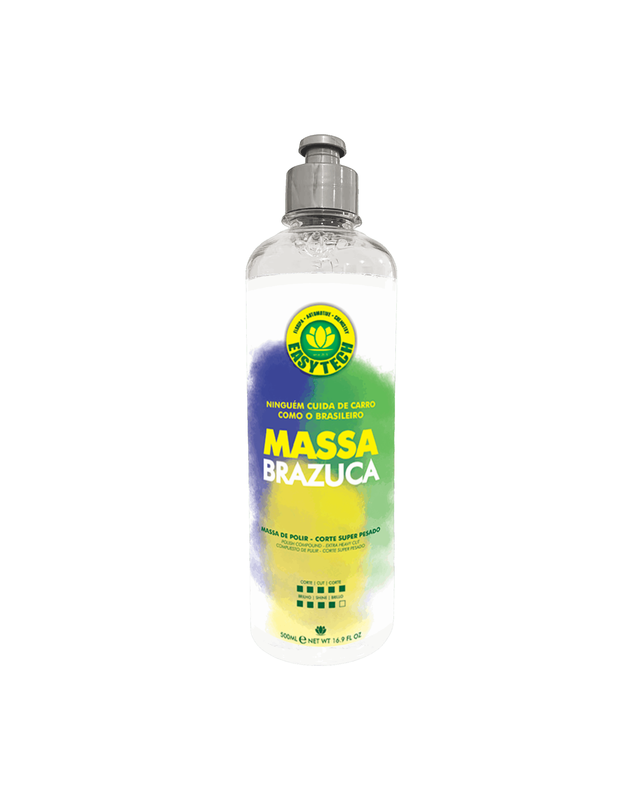 A Massa de polir Brazuca inaugura uma nova classe de massas no Brasil. As massas com um poderoso poder de corte, sem pó e com um acabamento digno de compostos polidores. Tudo pensado para fazer o profissional de estética automotiva ganhar tempo. O poder de corte, remoção de riscos e nivelamento de texturas impressiona. Extremamente eficiente em qualquer tipo de verniz, dos mais macios aos mais duros e complexos. Uma massa de polir que evoluiu com o mercado de estética, que precisa de melhores produtos e melhores preços. Produzida com um blend de grãos de Alúmina Calcinada de extrema pureza que pertimem atender desde repinturas, vernizes cerâmicos a vernizes extremamente macios. Altamente lubrificada e sem geração de pó.