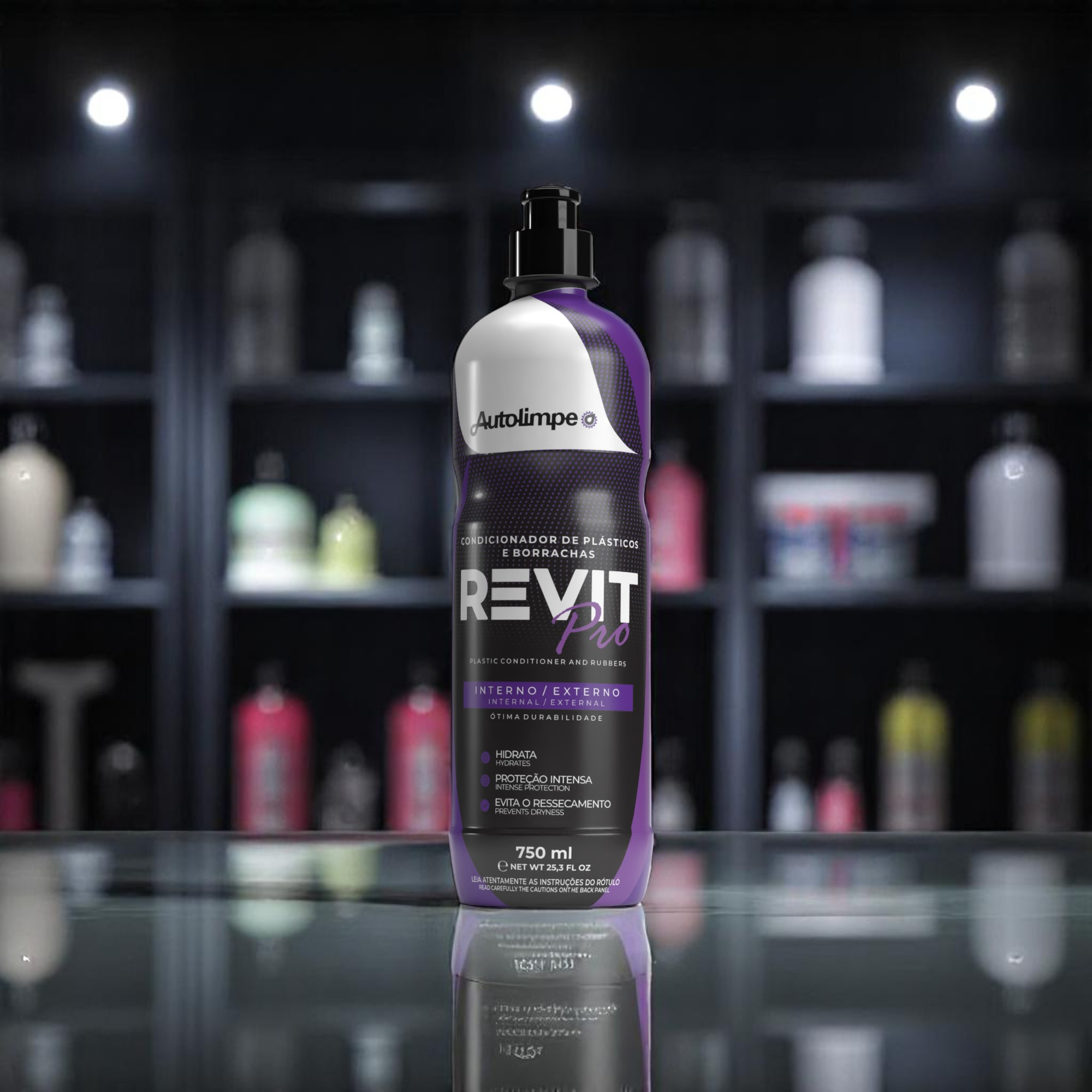 O REVIT PRO é um condicionador de plásticos e borrachas, desenvolvido para proporcionar renovação e proteção excepcionais em áreas internas, externas e peças de borracha. Sua fórmula com tecnologia avançada de SiO2 e polímeros de alta performance garante um acabamento uniforme, toque seco e brilho acetinado, devolvendo o aspecto de novo em poucos minutos. Resistente à água, o REVIT PRO mantém a superfície protegida por até 8 meses em plásticos internos e 3 meses em plásticos externos, oferecendo durabilidade, resistência UV e preservação da peça.