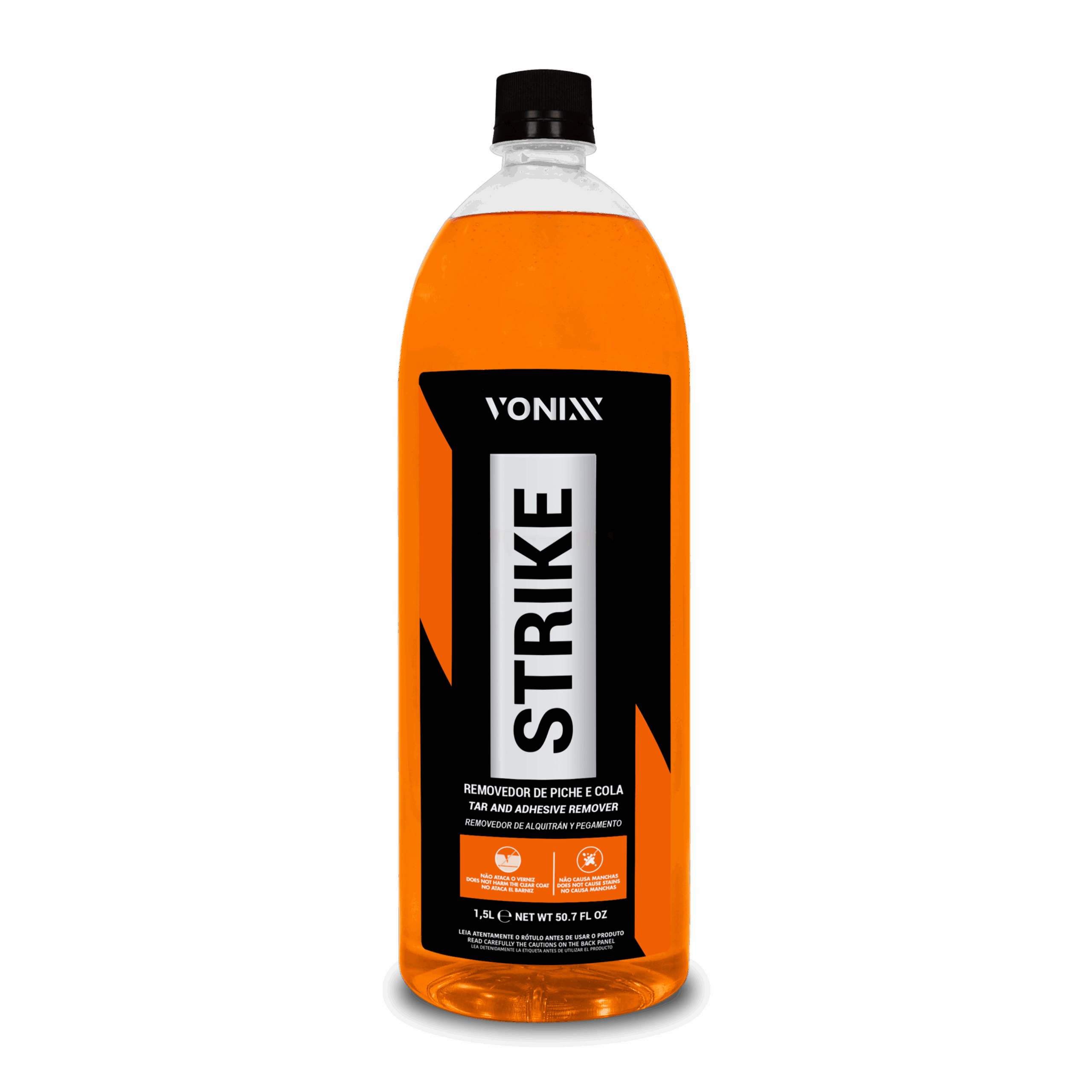 Strike é um produto de fórmula balanceada que age na remoção de piche e da maioria de resíduos de colas de adesivos e etiquetas autocolantes em geral.