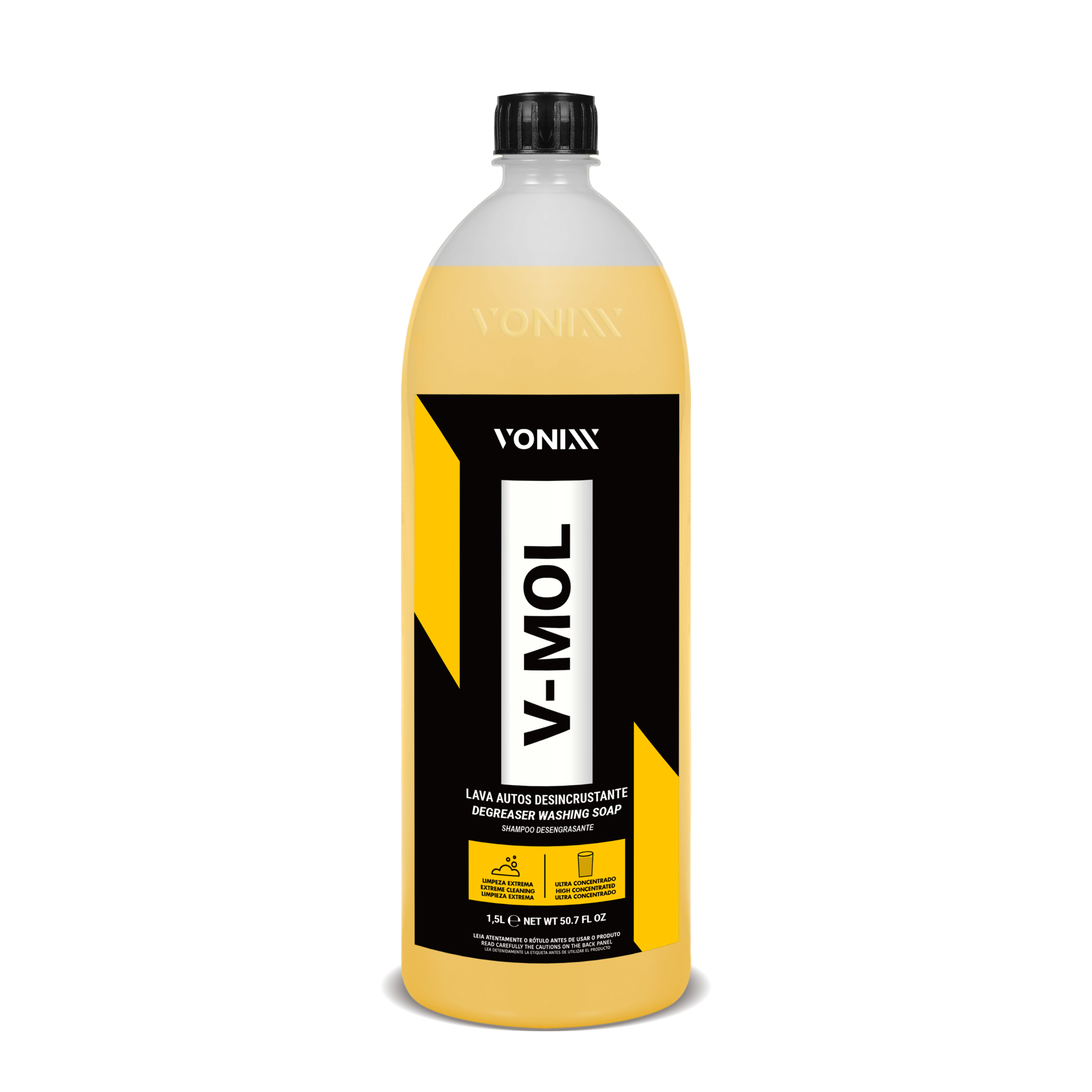 V-MOL é um lava autos biodegradável com pH levemente básico que não agride a superfície. Ideal para lavagem de automóveis, em especial para remoção de sujeiras mais difícieis, como remoção de barro e óleo.