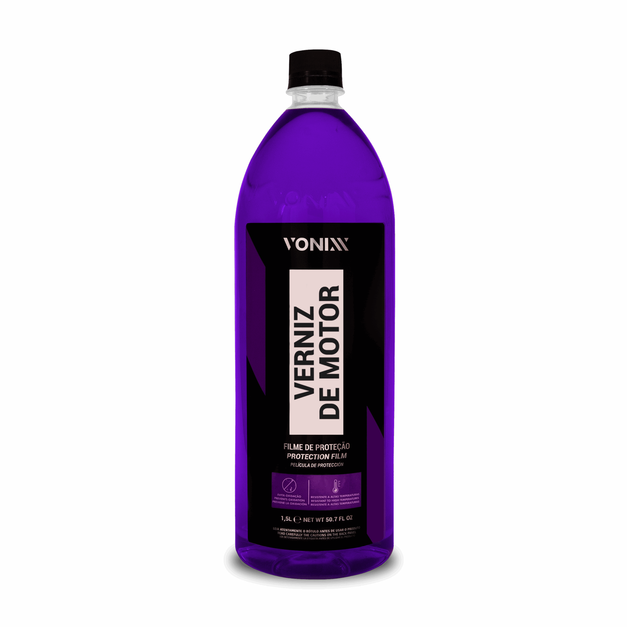 Verniz de Motor, protege, dá brilho e renova todas as superfícies existentes no cofre do motor, como pares metálicas, plásticas, superfícies pintadas e mangueiras de borracha. O produto forma um filme levemente lubrificado que penetra em locais difícies e adere em todas as superfícies citadas. Verniz de motor é resistente a altas temperaturas e tem durabilidade de até seis meses. Também pode ser utilizado em chassi e caixas de rodas, proporcionado os mesmos benefícios de sua aplicação no motor.