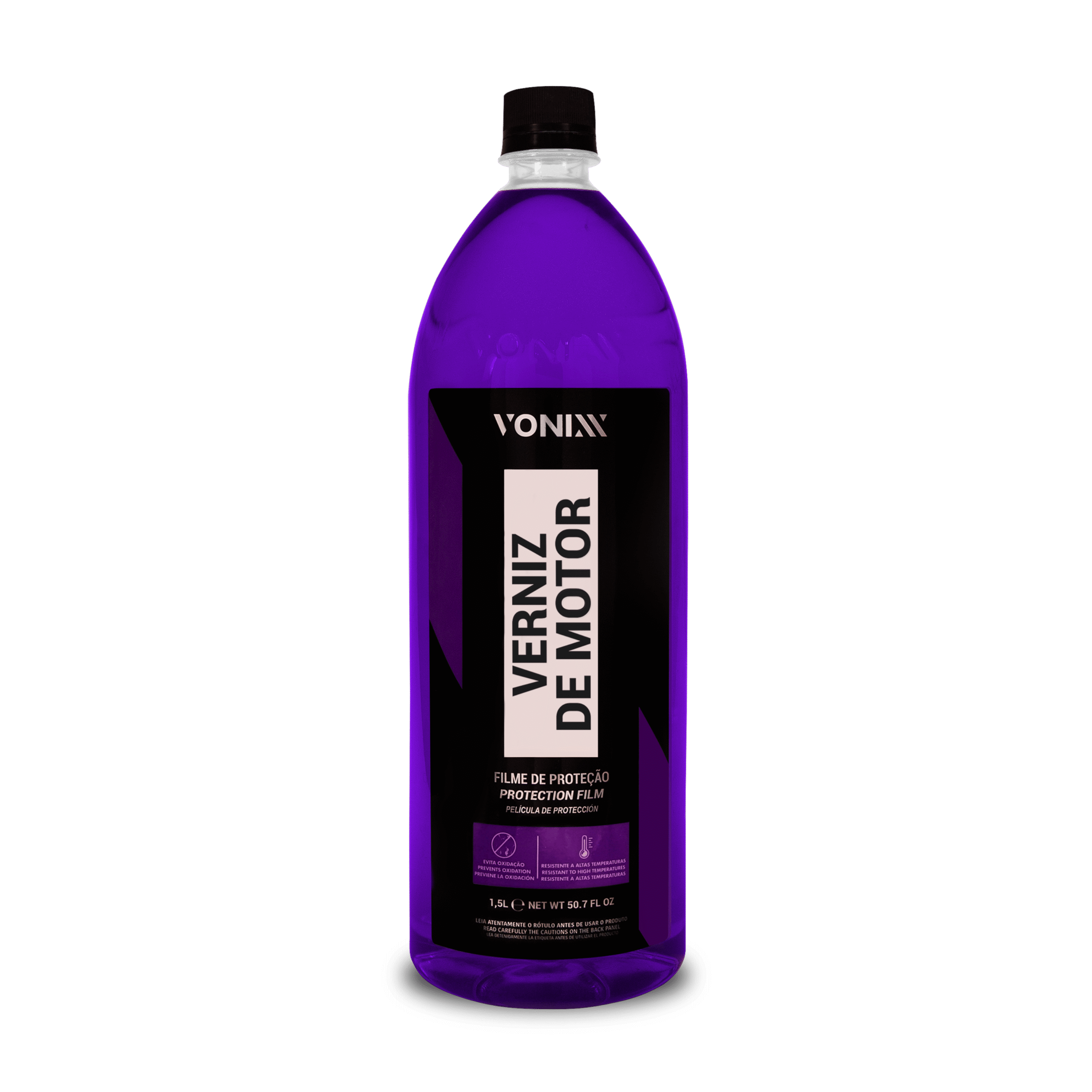 Verniz de Motor, protege, dá brilho e renova todas as superfícies existentes no cofre do motor, como pares metálicas, plásticas, superfícies pintadas e mangueiras de borracha. O produto forma um filme levemente lubrificado que penetra em locais difícies e adere em todas as superfícies citadas. Verniz de motor é resistente a altas temperaturas e tem durabilidade de até seis meses. Também pode ser utilizado em chassi e caixas de rodas, proporcionado os mesmos benefícios de sua aplicação no motor.